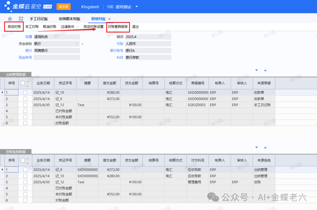 ![]() 五、再次进行对账差异是不是没有了或者变少了。