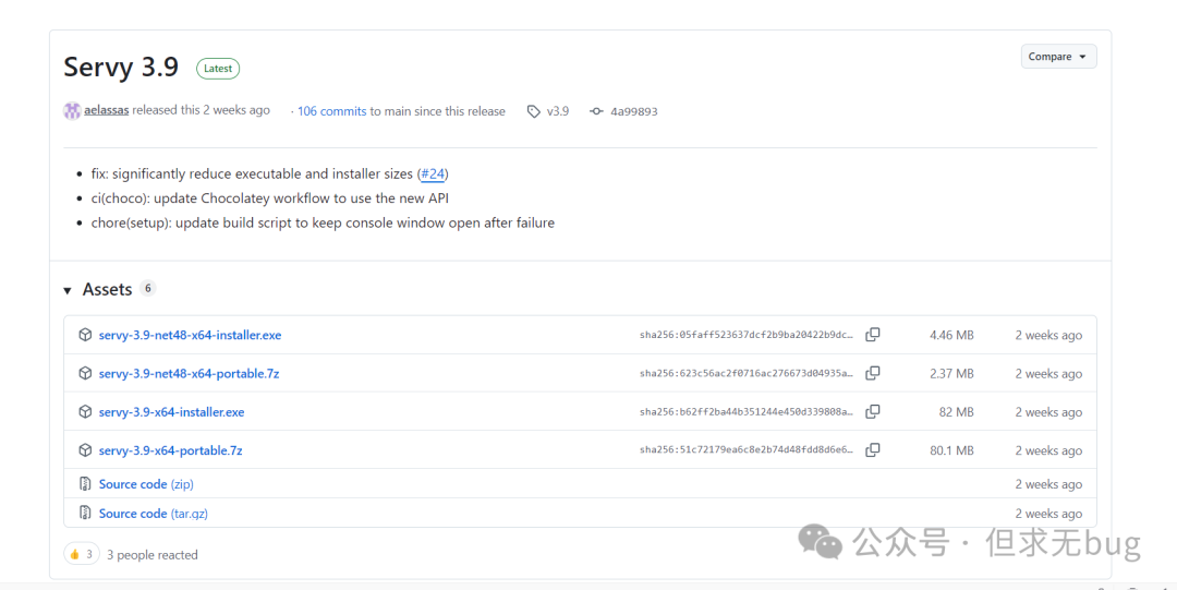 从此处可知,你当前最新版本为:v3.9。这里按需选择适合自己的版本进行下载即可。我这里下载的为“servy-3.9-x64-installer.exe”,下载后如下所示: