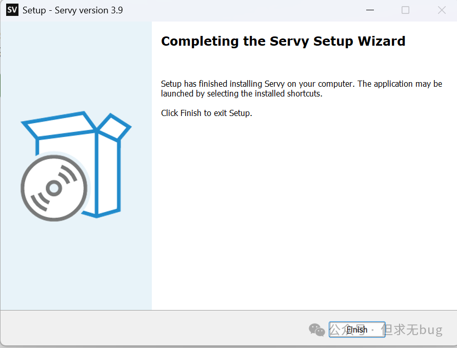 此时点击“Finish”便会结束安装。若勾选了安装桌面快捷方式,则会在桌面生成两个快捷图标:Servy 和 Servy Manager。
