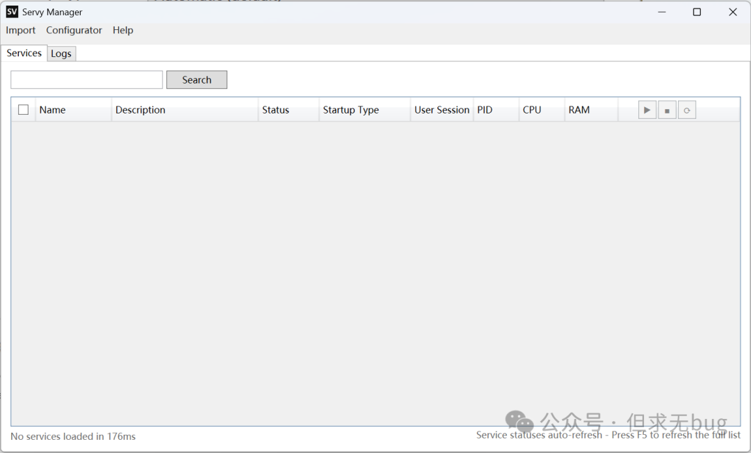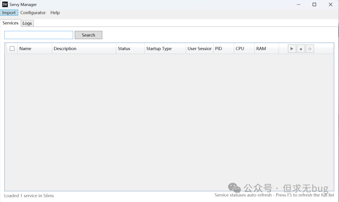 Servy 是一个Windows 服务管理工具,能将大部分应用程序注册成 Windows 服务进行管理。