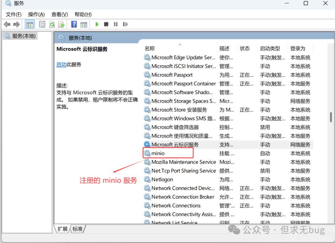 此时打开 Windows 服务列表,发现已出现了 minio 服务: