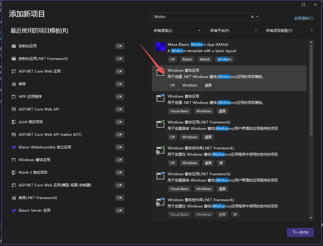 创建一个 WinForm 应用程序