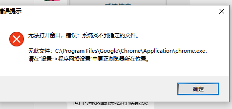 点晴MIS信息通PC客户端点击主页图标,无法打开谷歌浏览器窗口,提示错误:系统找不到指定的文件,如何解决? 提示很清楚,就是点晴MIS信息通当前设置的浏览器位置有误,指定的位置中没有这个浏览器主程序。如果之前可以,现在不行,那就是卸载或重装了当前指定的浏览器,导致指定目录下没有了此浏览器。处理方法为重新指定浏览器位置...
