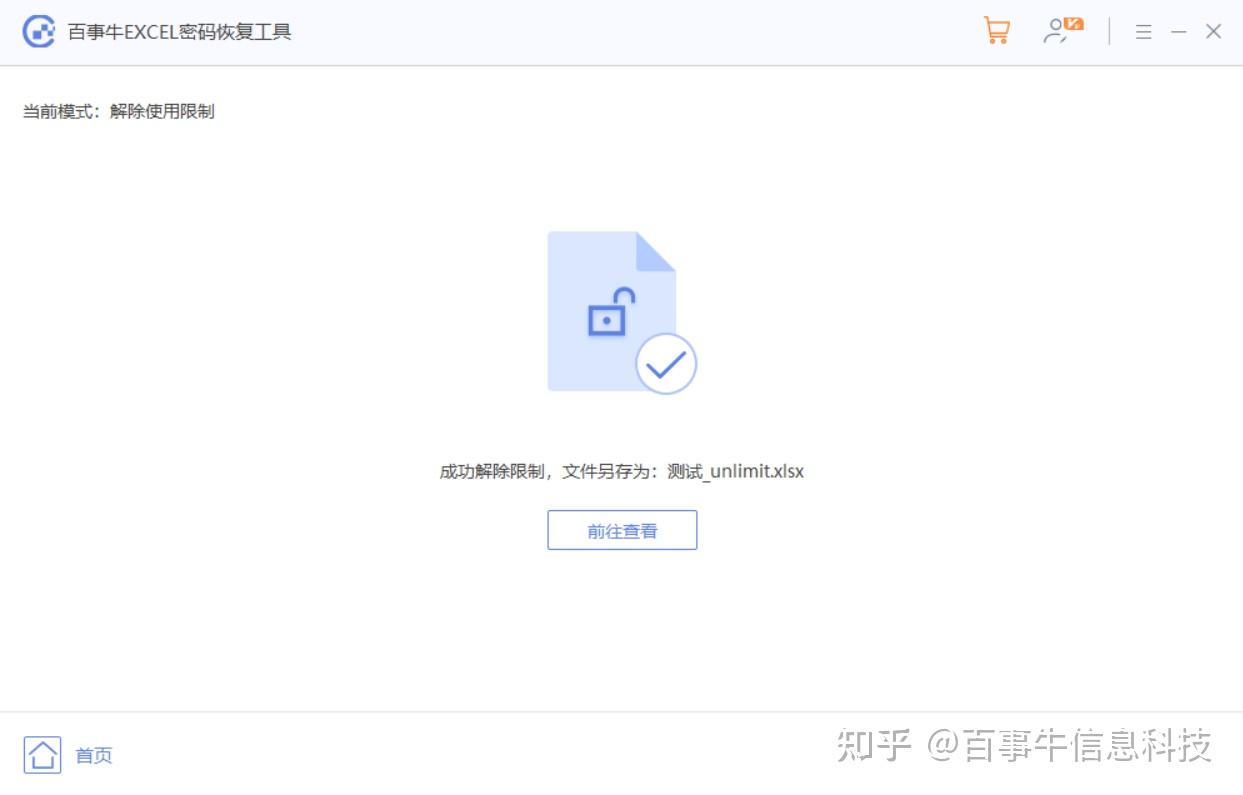 解除限制后的Excel表格将另存为新的文件,点击工具里的【前往查看】即可找到。