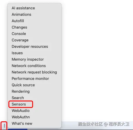 点击左下角三点图标,选择 Sensors