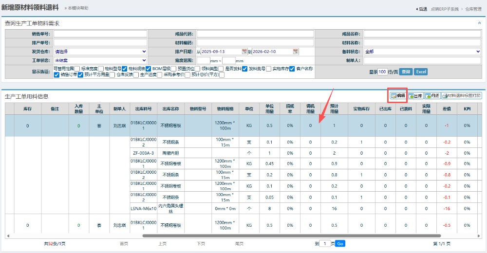如需要修改编辑,详细操作可以查看教程:点晴ERP领料单编辑操作 该文章在 2025/12/12 17:10:57 编辑过 |