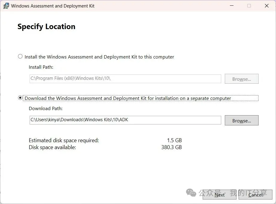 注意,上一步下载的仅仅是ADK的下载器,运行它,选择“安装”或“下载”完整的安装包,我建议是选择“下载”而不是“安装”,这样更便于以后安装ACT