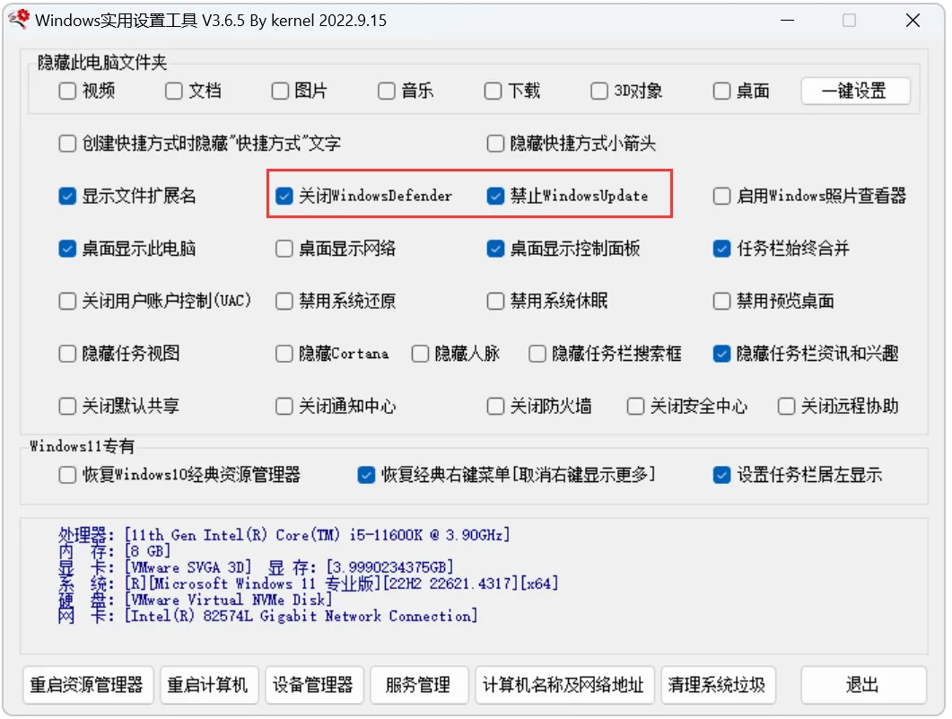 此外,Windows安全中心和自动更新虽然无法彻底关闭,但这款软件支持永久关闭它们,避免不必要的干扰。