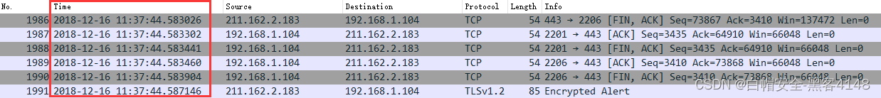 ip.addr == 211.162.2.183 获取待分析数据包列表。