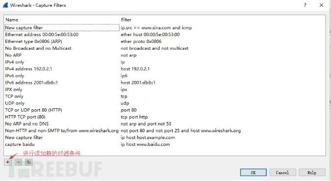 抓包过滤器的菜单路径为 Capture → Capture Filters,用于在捕获数据包前设置过滤规则。