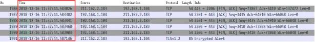 调整数据包列表中时间戳的显示格式。调整方法为 View → Time Display Format → Date and Time of Day。调整后的格式如下: