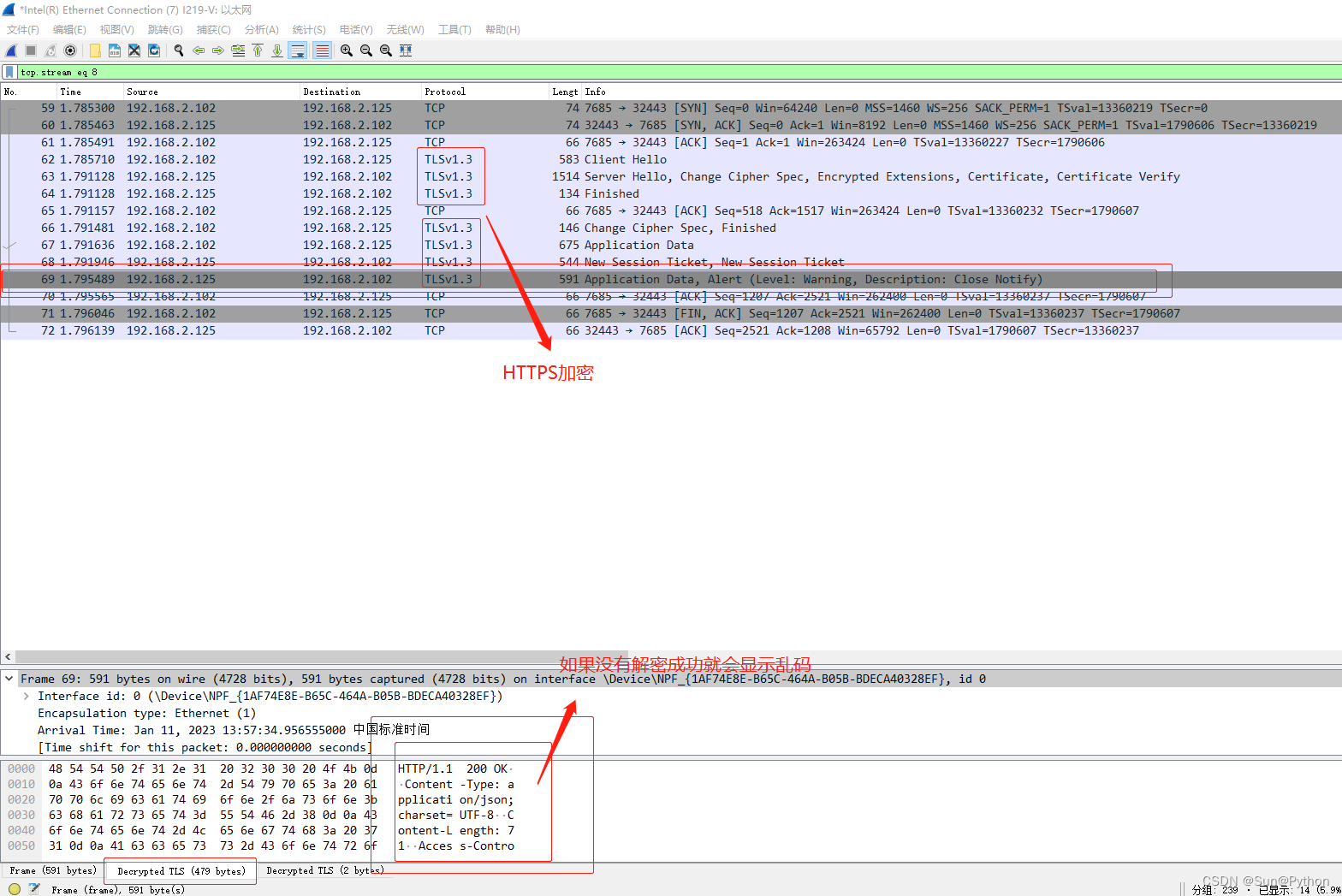 TLSv1.2/1.3)将被自动解密,显示为 HTTP 协议。 - 关键检查: