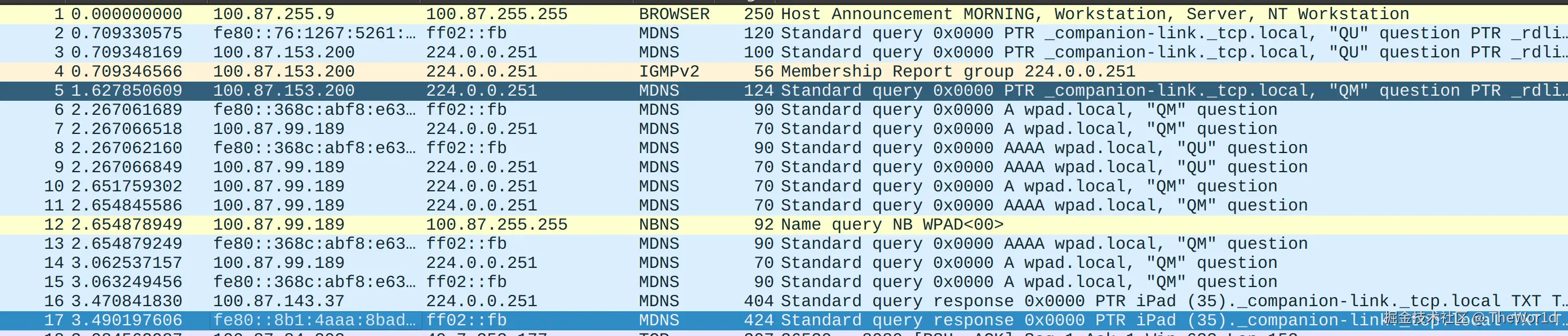 其中占比最大的一类,通常是 MDNS(Multicast DNS),它有几个非常明显的特征: