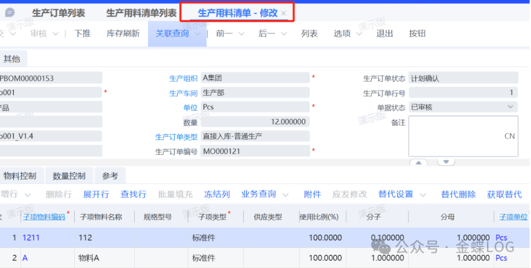 [点晴模切ERP]【金蝶云星空】生产用料清单生成原理和6种修改方式