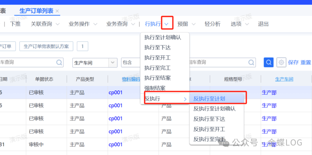 除了方式四的按钮,工程部在改了BOM之后,PMC也可以将对应工单进行反执行到【计划】状态,再重新进行【计划确认】,这样系统就会将工程修改BOM的内容更新到用料清单上。