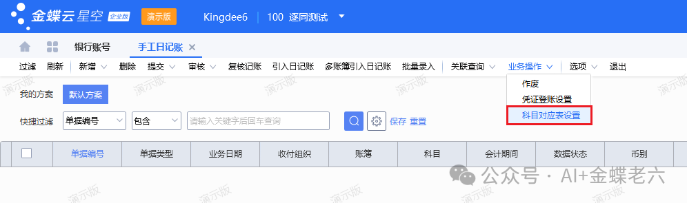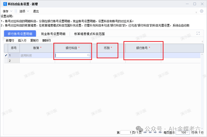 2.科目对应表设置:如果银行账号不挂在科目维度上,一个银行账号设置一个科目,则需要进行以下设置