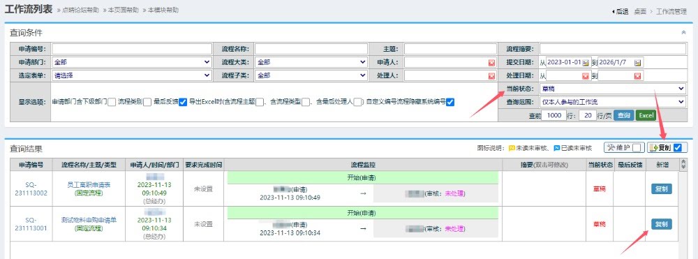 草稿在哪里找出来?不知道你问的是哪一个草稿,在点晴MIS系统中涉及到草稿的主要有两个位置,一个是工作流、一个是富文本框编辑器,下面分别予以说明。一、工作流草稿进入工作流管理模块,在工作流列表页面,将查询条件中的“当前状态”改为:草稿,然后点击查询,就会过滤出本人有权限使用的工作流草稿了:然后勾选下面的“复制”,就会列表...