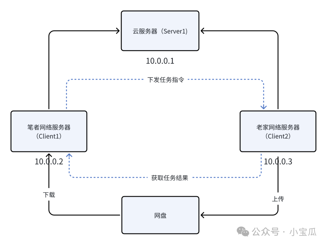 前言笔者在现在工作中经常需要下发一些比较占用网络带宽的脚本任务,一时间搞得家里的网络异常拥堵。正在发愁之际突然想起老家的千兆宽带一直都是半闲置状态,除了爸妈刷短视频的那点流量外,其余时间都是空闲着,那有没有办法将任务下发到老家设备,将这千兆宽带给利用上呢?构想了一下,其实只需要在老家放置一台服务器,通过远程登录下发任务...