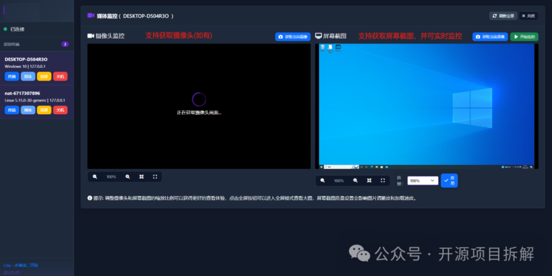 最牛远程桌面开源:跨平台设备集中控制解决方案源代码https://www.gitpp.com/mangge/project0090-device-clay​一款基于Python与WebSocket技术栈开发的轻量级远程控制工具,旨在通过浏览器界面实现对多台不同平台的设备进行集中化管理。无论是个人设备远程维护、小型办公网...