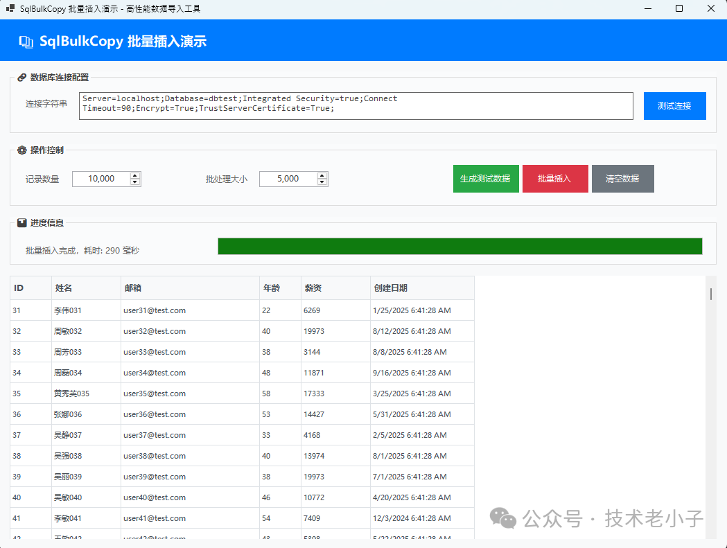 你是否还在为大量数据导入而头疼?传统的逐条Insert让你的应用卡顿不堪?今天就来分享一个C#开发中的性能神器——SqlBulkCopy,它能让你的数据导入速度提升10倍以上!无论你是在做数据迁移、批量导入Excel数据,还是处理海量业务数据,掌握SqlBulkCopy都能让你的应用性能脱胎换骨。本文将通过完整的Win...