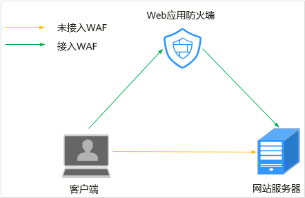 - 当网站没有接入到WAF前,DNS直接解析到源站的IP,用户直接访问服务器。