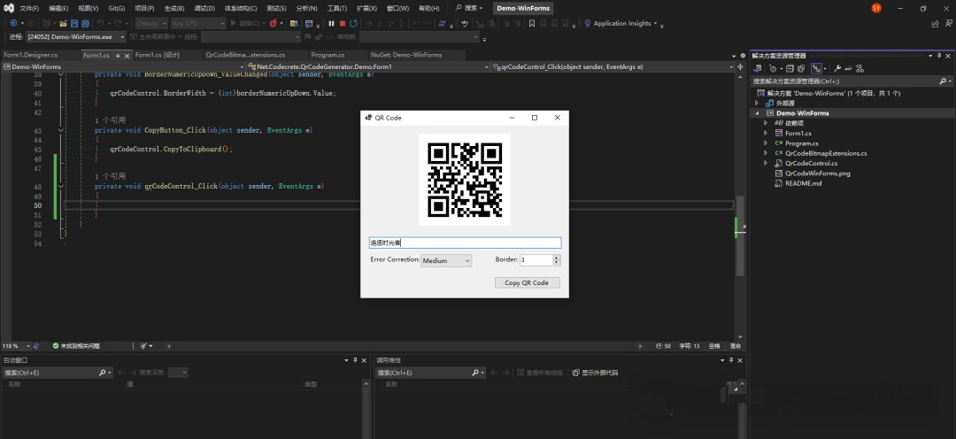 QrCodeGenerator提供了丰富的示例代码,展示了如何在WinForms、WPF、WinUI、ASP.NET Core等环境中使用。
