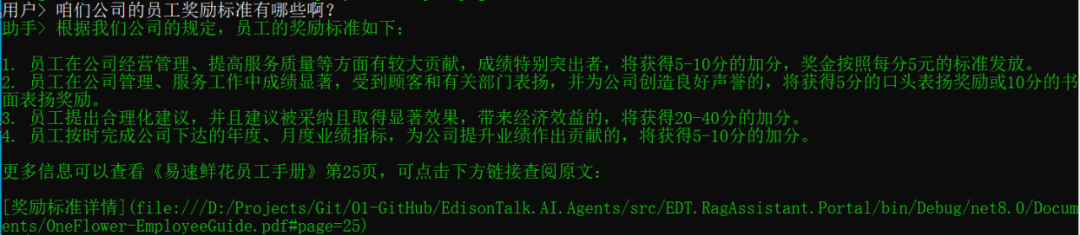 例如,员工想要了解奖励标准、行为准备、报销流程等等,都可以通过和这个AI机器人对话就可以快速了解最新的政策和流程。