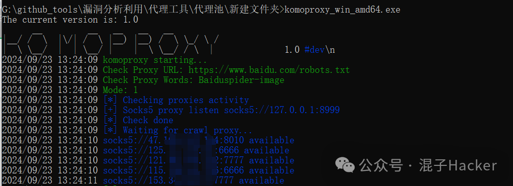 这里使用的socks文件,默认是proxy.txt文件,所以直接运行即可
