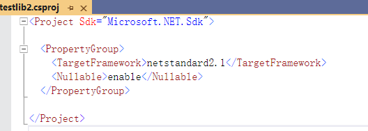 从打开的项目文件可以看到当前类库默认为 netstandard2.1,配置的xml标签为 TargetFramework。如果要支持多版本,这里需要做调整,将 TargetFramework 节点加个s修改为 TargetFrameworks,再添加目标版本。如下: