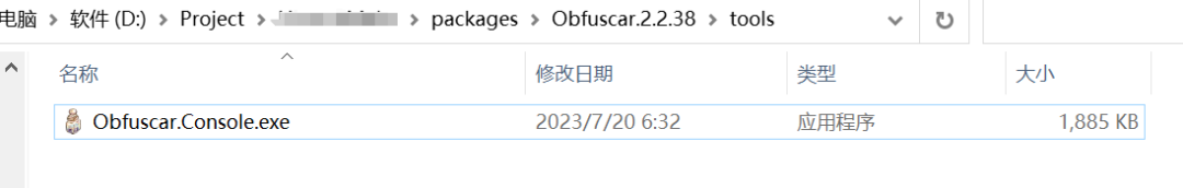 2、在项目根目录下找到packages\Obfuscar.2.2.38\tools,将Obfuscar.Console.exe拷到要加密文件的文件夹中