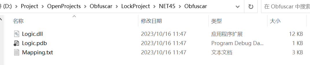 6、在生成的Obfuscar文件夹中可以找到被加壳后的同名Logic.dll
