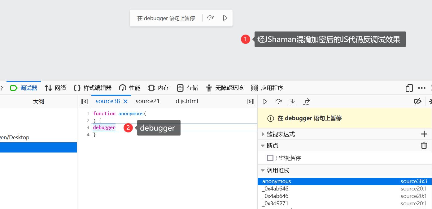 这是因为,debugger更多的被人们用于反调试,比如用JShaman对JavaScript代码进行混淆加密后,就可以被加入多种不同的debugger指令用于反调试。