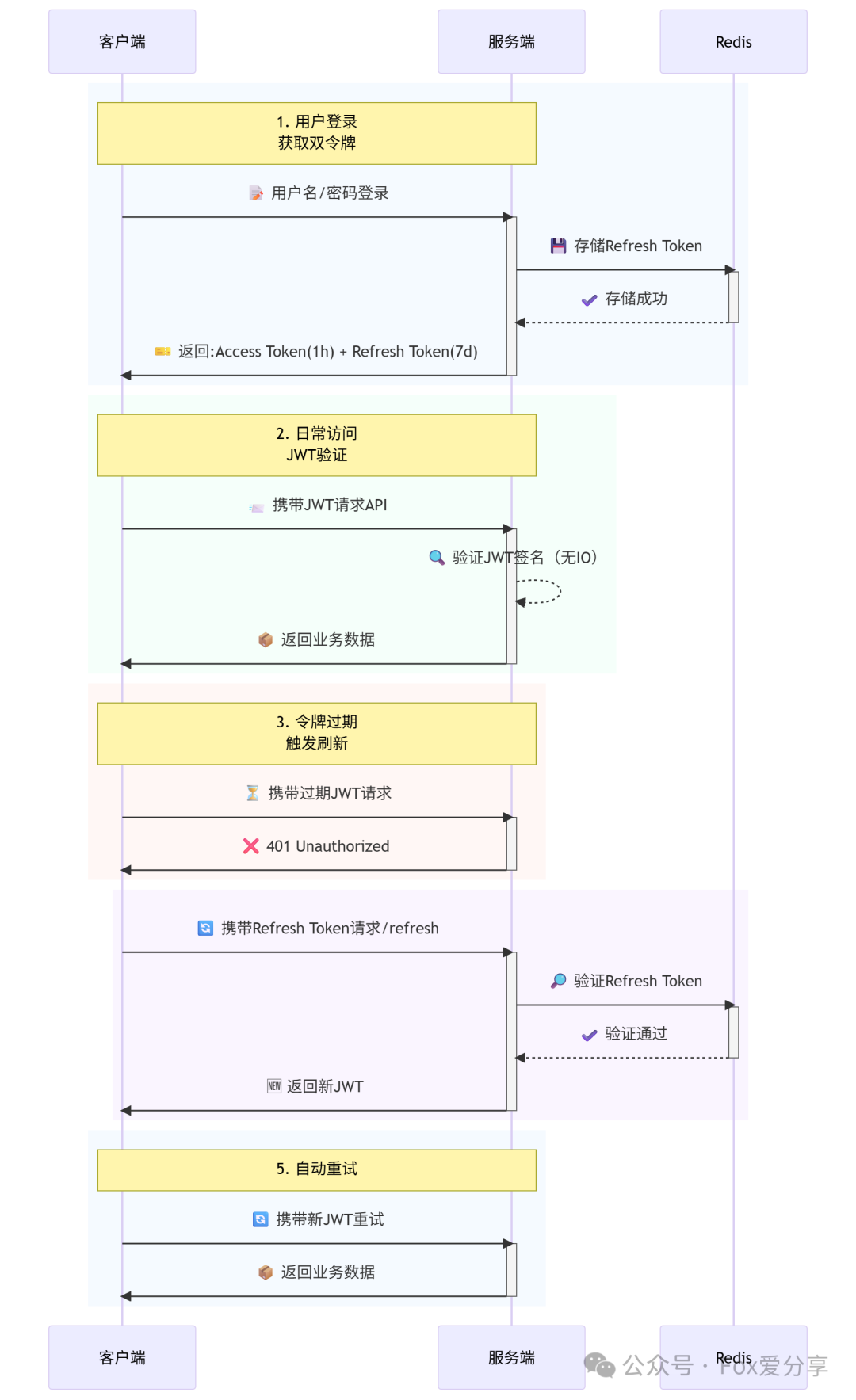它引入了“双令牌”的概念,把“访问权限”和“续期权限”解耦。