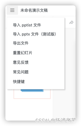 • 导出本地文件(PPTXJSON、图片、PDF