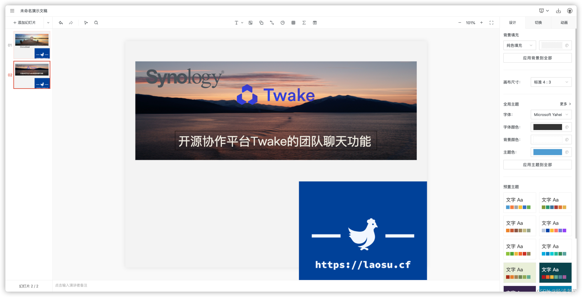 今天我们要介绍的是一个适用于所有人的演示工具,名为 PPTistPPTist 提供了各种美化选项,可以帮助您更加精美、流畅地修饰您的幻灯片,使其更加吸引人。无论您是开发人员还是其他领域的专业人士,PPTist 都是一个功能强大且易于使用的工具,能够让您的演示更加出色。