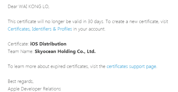 Apple关于证书过期说明