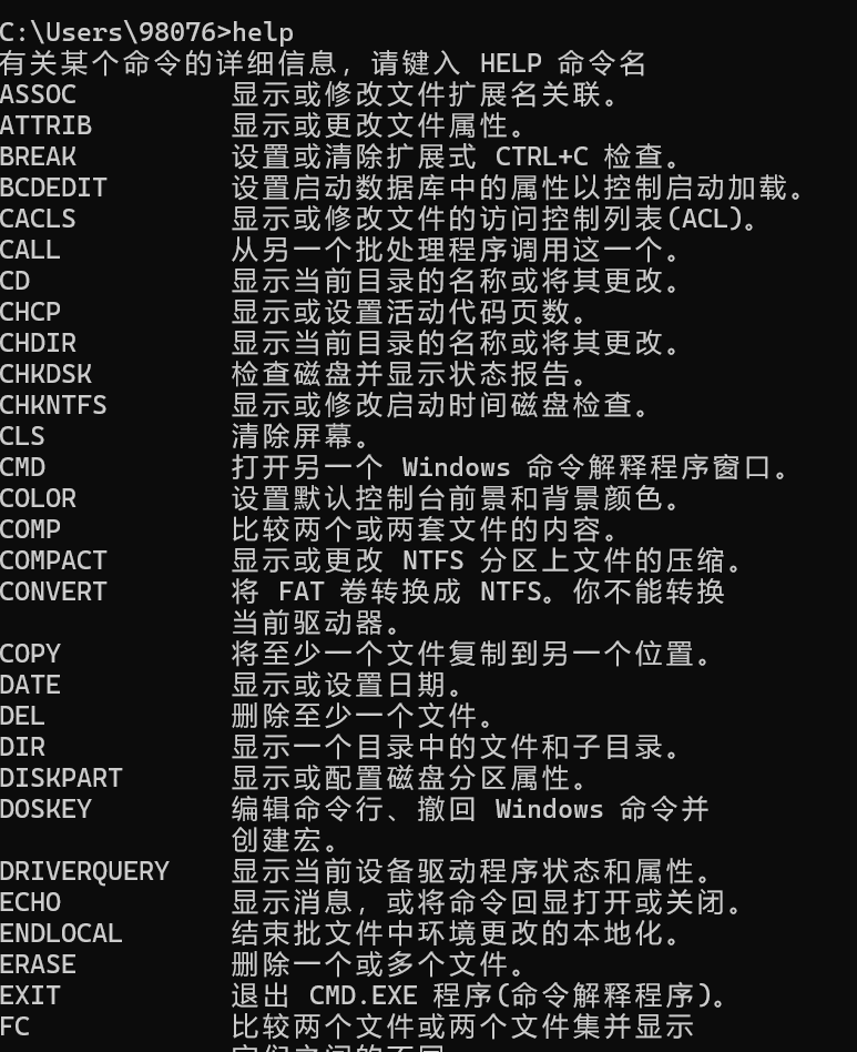 更多命令,可以在窗口终端直接输入
