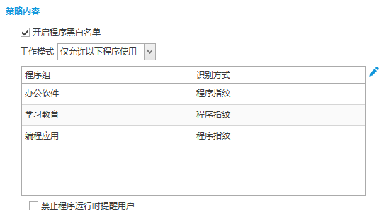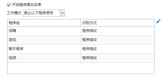 ②应用程序白名单 开启应用程序黑白名单后,可配置只允许特定程序在公司内部使用或者禁止访问一些高危程序。
