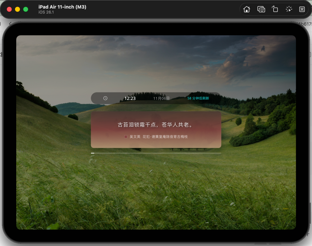 它能够显示时间和一句随机诗词,点击屏幕或者等待一小时,诗词内容会自动刷新,让你的手机变成一个优雅的桌面摆件。