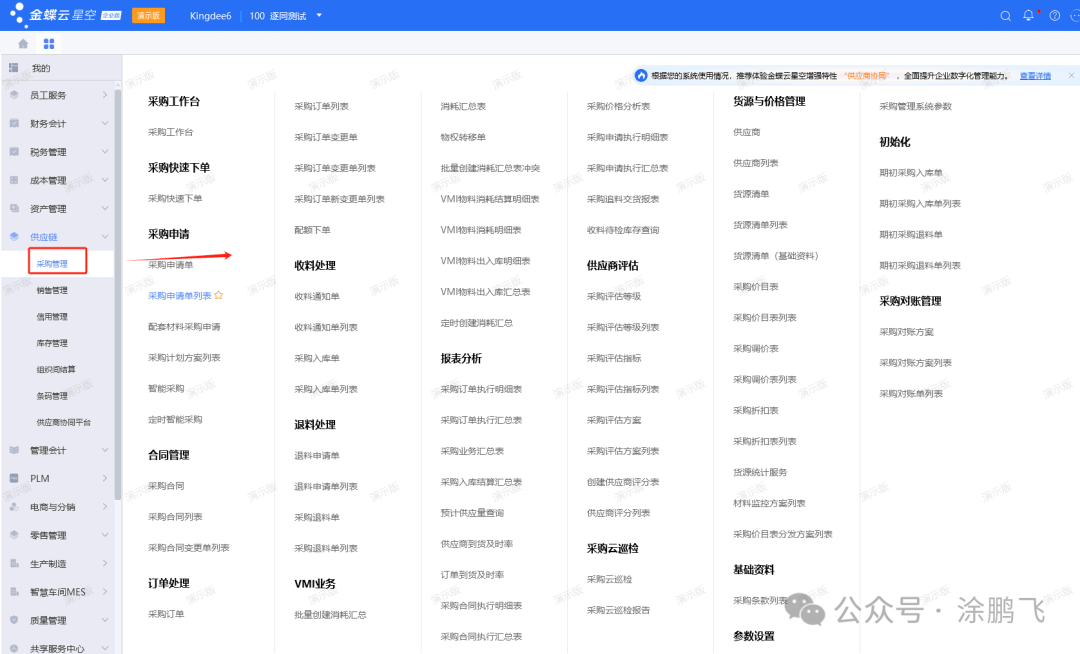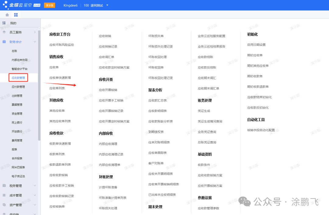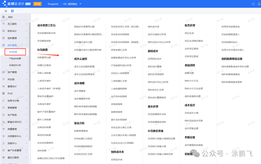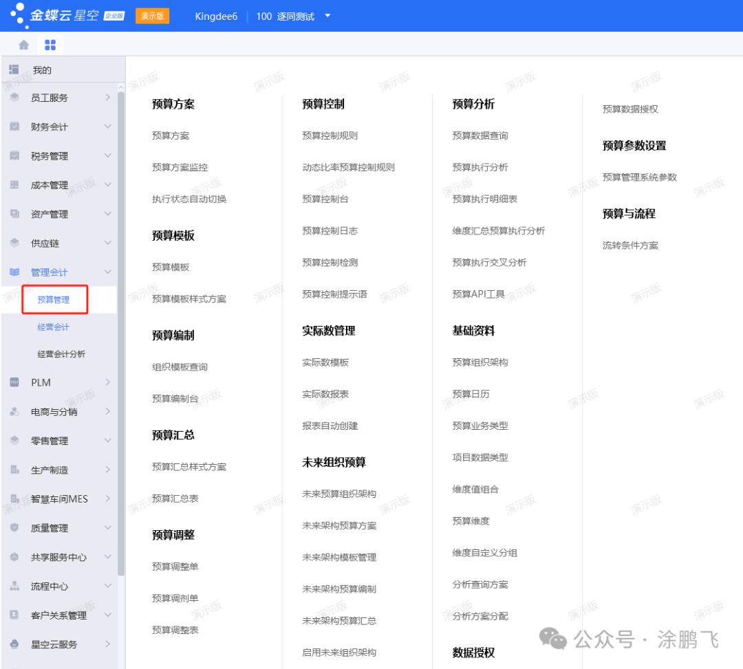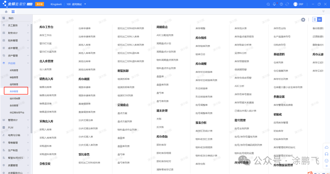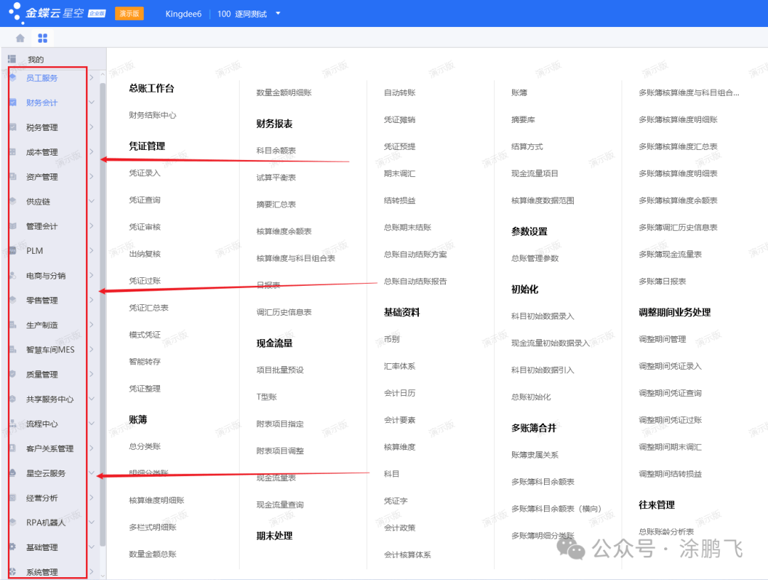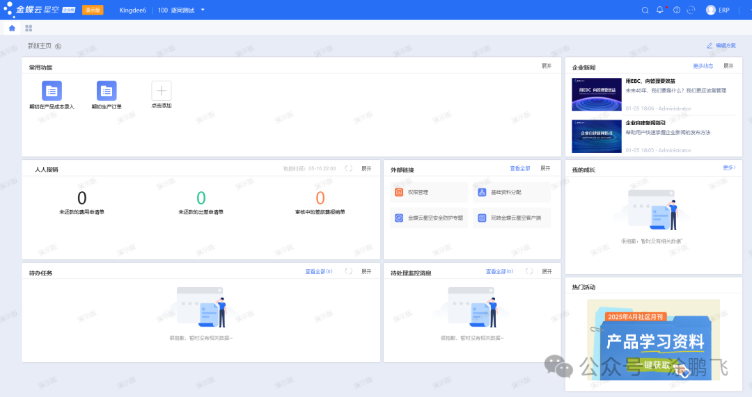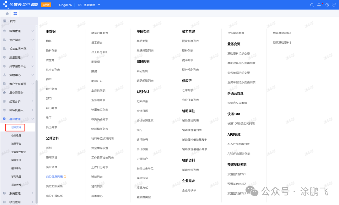 我们先看下金蝶云星空的主页和菜单界面