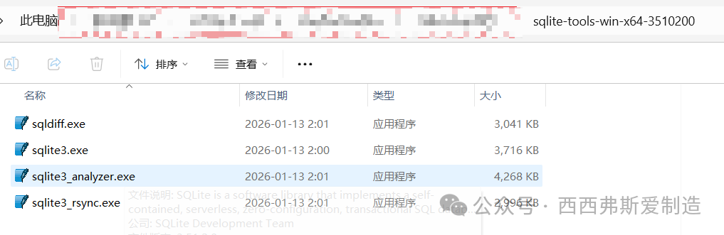 下载主要有两类:上面的第一类包含动态库和一些扩展文件,第二个包含相关的可执行文件,读者需要根据电脑类型下载对应文档。常见可择下载库文件:sqlite-dll-win-x86-3490100.zip 或者 sqlite-dll-win-x64-3490100.zip,下载操作工具:sqlite-tools-win-x64-3490100.zip。