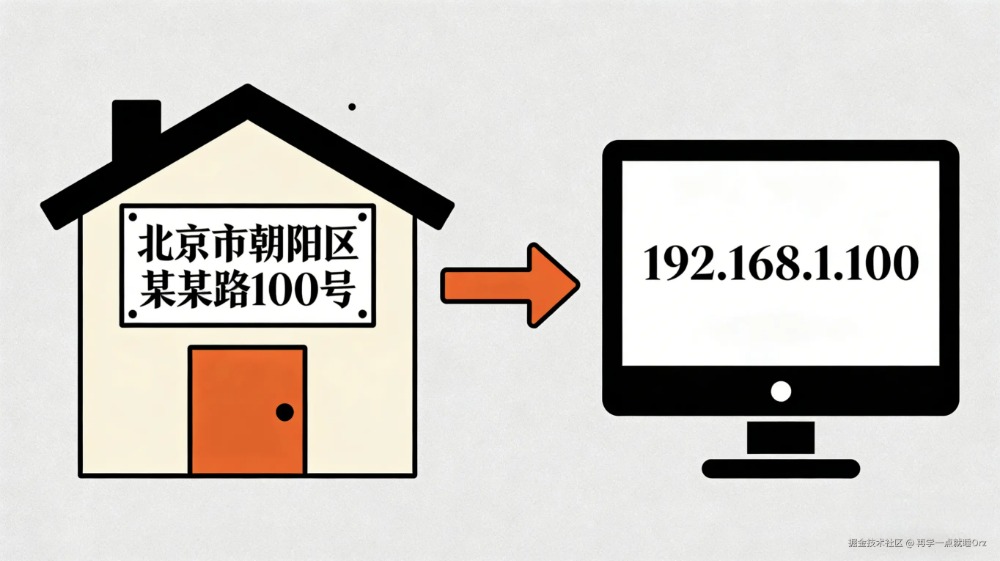 我们在现实中靠门牌号接收快递,设备在互联网中就靠IP地址接收数据,两者逻辑完全一致: