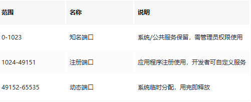 端口取值范围0-65535,共65536个,按用途分为三类: