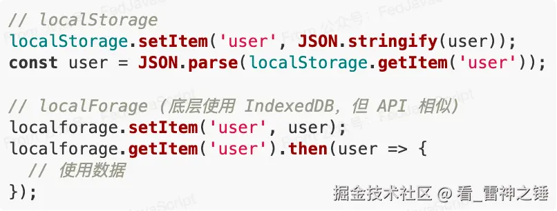 以 localForage 为例,迁移成本几乎为零: ![]()