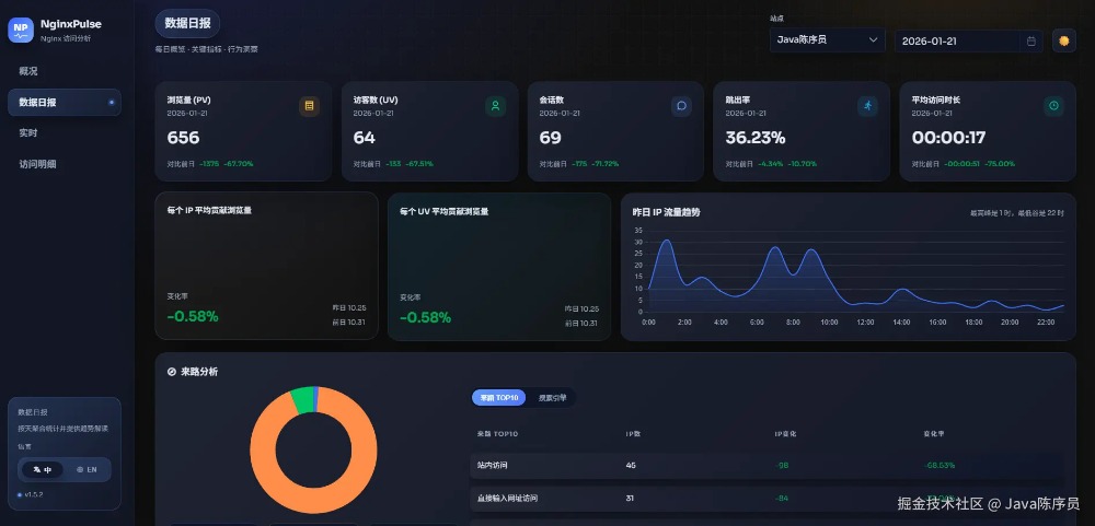 今天,给大家推荐一款开源的轻量级 Nginx 日志分析可视化面板,告别逐行翻日志! 项目介绍