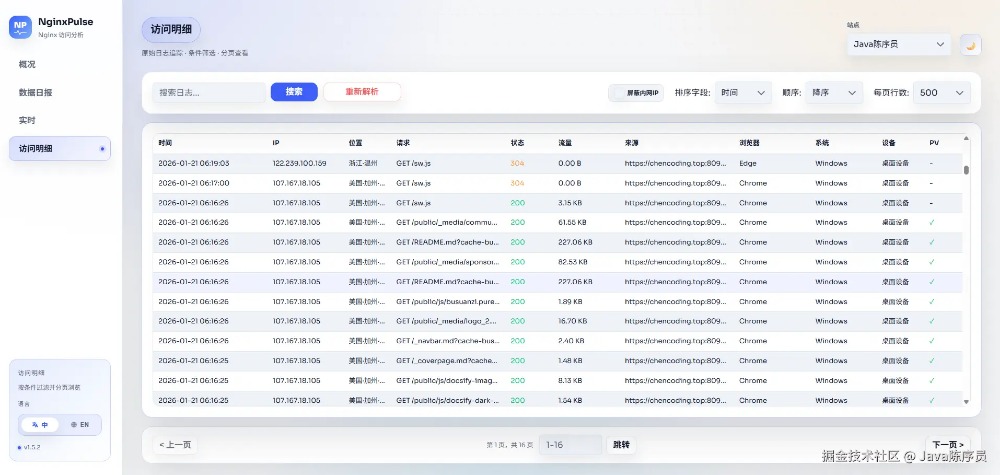 对于运维人员、站长来说,Nginx 日志是分析网站访问情况的核心,但逐行翻阅、手动统计 PV/UV、排查 IP 归属地的过程,耗时又费力。尤其是多站点部署时,不同日志文件切换、数据零散的问题,更是让人效率大打折扣。