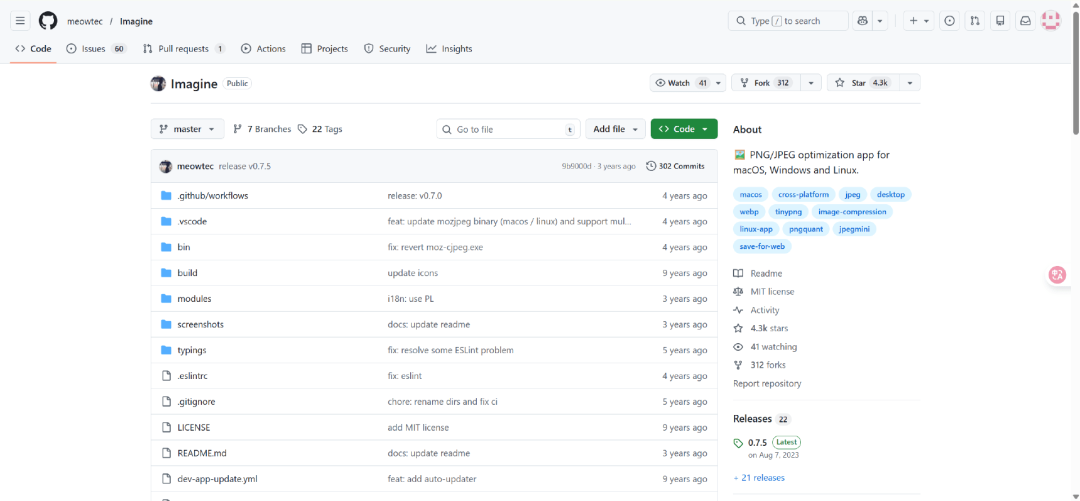 Imagine由meowtec大神开发,支持Windows、MacOS和Linux等操作系统,GitHub项目地址如下: