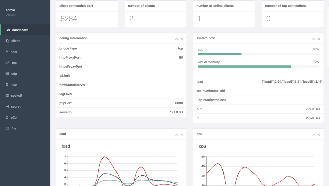 - 实时监控:流量图表、在线状态