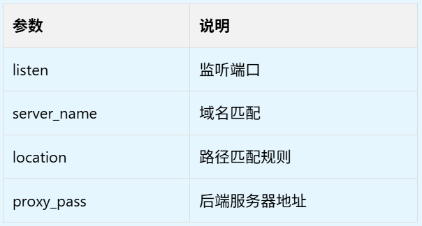 在微服务架构中,前端只需要访问一个统一入口,如下:server { listen 80; server_name example.com; location /api { proxy_pass http://backend_server; } }