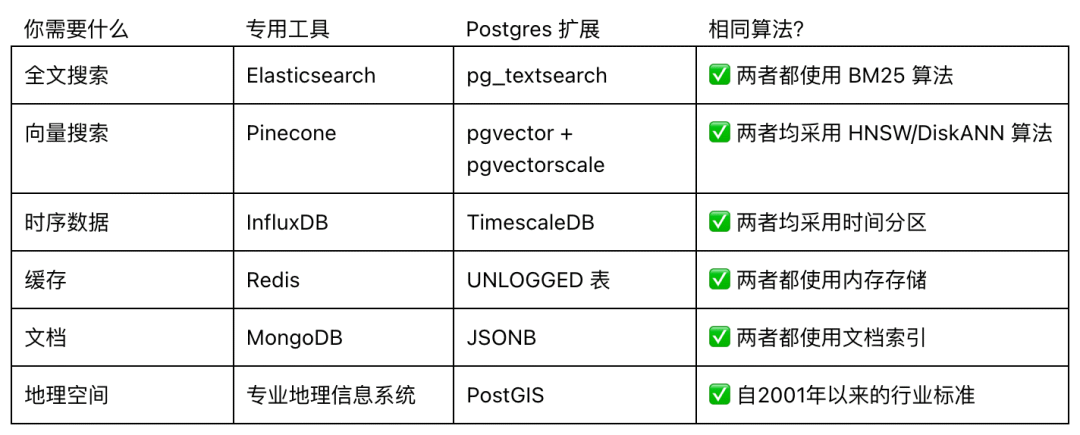 很多性能都媲美专用数据库!(这些插件的平均寿命是 10 年左右,已经具备多年的生产环境稳定性了)